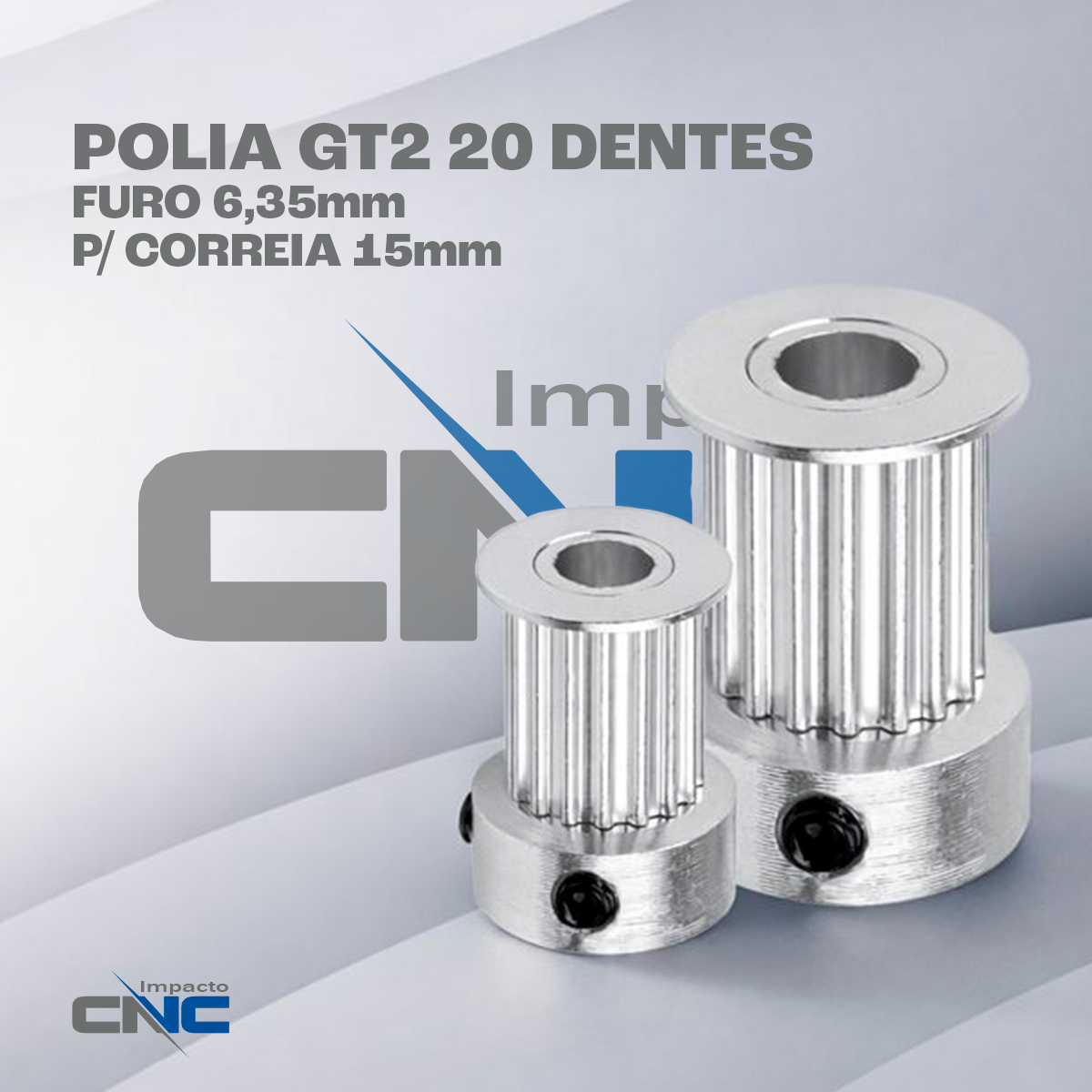 Polia GT2 20 Dentes, Furo 6,35mm, P/ Correia 15mm